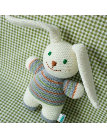 Зайчонок Мася небольшой - всего 20 см, и так приятно ложится в детскую ручку.